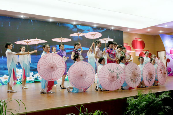 一曲氣勢恢宏的舞蹈《輝煌禮贊》拉開了文藝匯演的序幕。音詩畫《我們的領路人》展現出新譽集團領導帶領全體員工艱苦拼搏、創新發展的智慧、膽識和擔當以及全體員工與集團同呼吸共命運的忠誠?!缎〕乔樗肌泛汀盾岳蚧ā返任璧腹澞?,充分展示了企業女職工在黨委書記戈亞琴女士的帶領下,巾幗不讓須眉,努力為集團增光添彩的最新風采。隨后,小品、獨唱、合唱等形式的節目繽紛亮相。今年的團拜會首次加入了微信搶紅包的活動環節,臺上臺下形成了一片熱熱鬧鬧迎新年、歡歌載舞慶豐收的歡樂海洋。