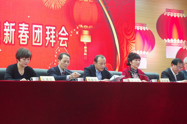 首頁 > 集團新聞 羊隨新風辭舊歲,猴攬正氣報新春!2016年1月15日下午,新譽集團大禮堂暖意濃濃,歌聲嘹亮,一年一度的迎新春團拜會正在舉行。集團大禮堂1500個座位座無虛席,集團領導、員工代表及嘉賓一同觀賞了屬于新譽自己的“春晚”。